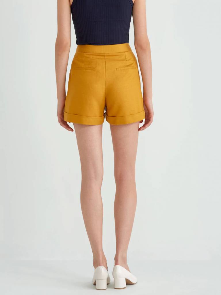 Account aanmakenFront Pleated Linen Blend Short in Dark Honey